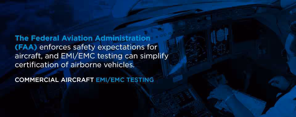 Commercial aircraft carry out everyday duties like transporting mail, cargo and passengers. From domestic to international flights, these vehicles serve the public and need rigorous quality assurance.Some private commercial groups abide by military testing, while others cooperate with separate testing practices. However, civilian equipment and aircraft have to adhere to the Federal Communications Commission (FCC) standards. The FCC the U.S. regulating authority on radio transmissions and other EMI-permeable devices.The U.S. Code of Federal Regulations Title 47 holds the descriptions of adequate EMC testing in Parts 15, 18 and 68. FCC Part 15 is the primary statement that establishes commercial standards. This portion explains that unlicensed signals, whether intentional or not, need monitoring, and the subparts detail kinds of radiators, personal communication devices and computing electronics that can impact aircraft.The Federal Aviation Administration (FAA) enforces safety expectations for aircraft, and EMI/EMC testing can simplify certification of airborne vehicles. Their AC 20-190 document indicates the best practices for aircraft electromagnetic compatibility certification.