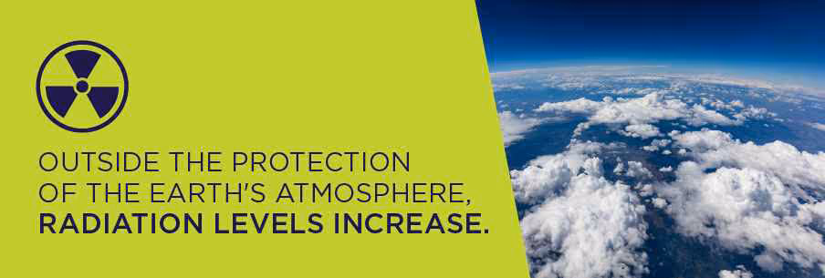 Outside the protection of the Earth's atmosphere, radiation levels increase. But those values that reach a spacecraft depend on how high that craft orbits the planet. Those in low-Earth orbit will experience less radiation than those in higher orbits or destined for even farther travel. Solar storms can drastically spike the radiation levels with little notice.