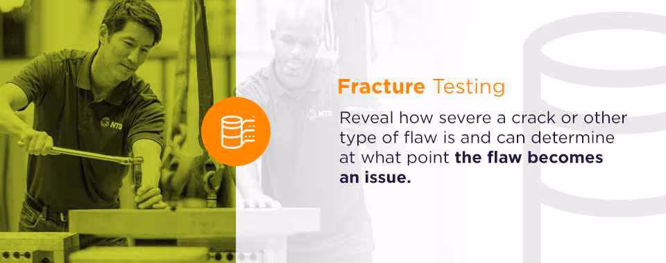 Fracture mechanics can reveal how severe a crack or other type of flaw is and can determine at what point the flaw becomes an issue. This may involve testing an intentionally cracked material or product, or one that has cracked throughout other testing. Some types of fracture testing include: