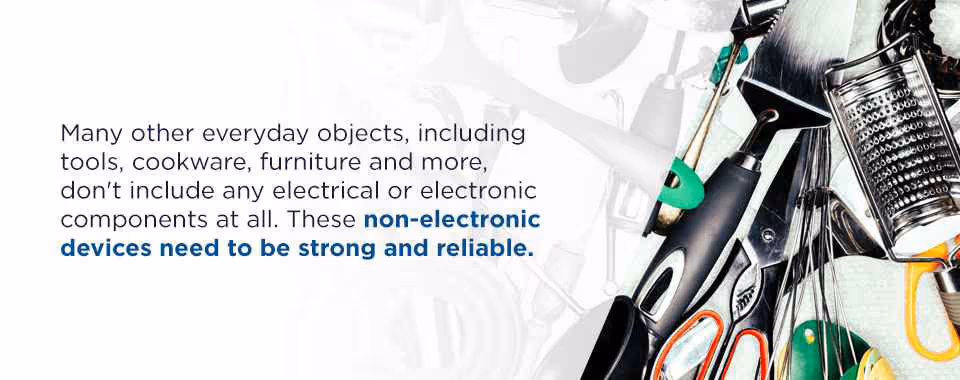 Many other everyday objects, including tools, cookware, furniture and more, don't include any electrical or electronic components at all. These non-electronic devices need to be strong and reliable.